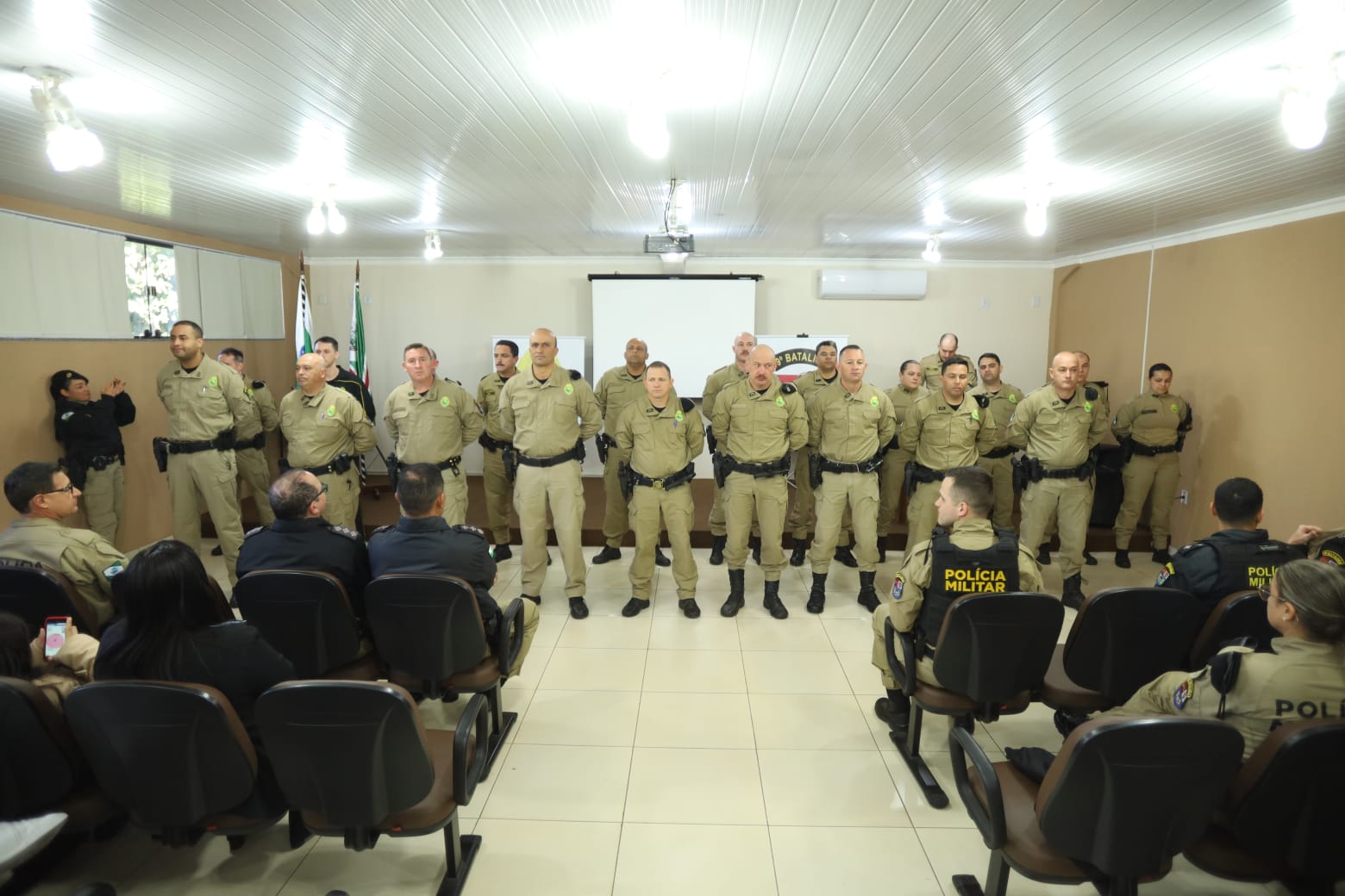 A cerimônia contou com a presença de familiares, que prestigiaram a troca de luvas e divisas, simbolizando oficialmente a passagem para novas etapas na carreira policial. Durante o ato, também foi realizado o Compromisso do Primeiro Posto pelo 2° Tenente Andrade, que, com 34 anos de trajetória na PMPR, passou a integrar o quadro de oficiais da instituição.